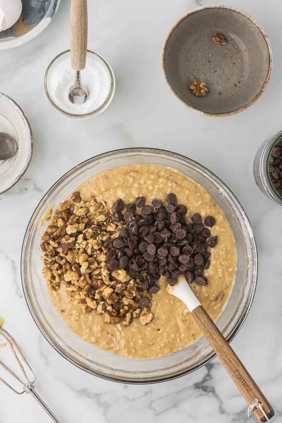 Step 6: Gently fold in the chocolate chips (and walnuts, if using).