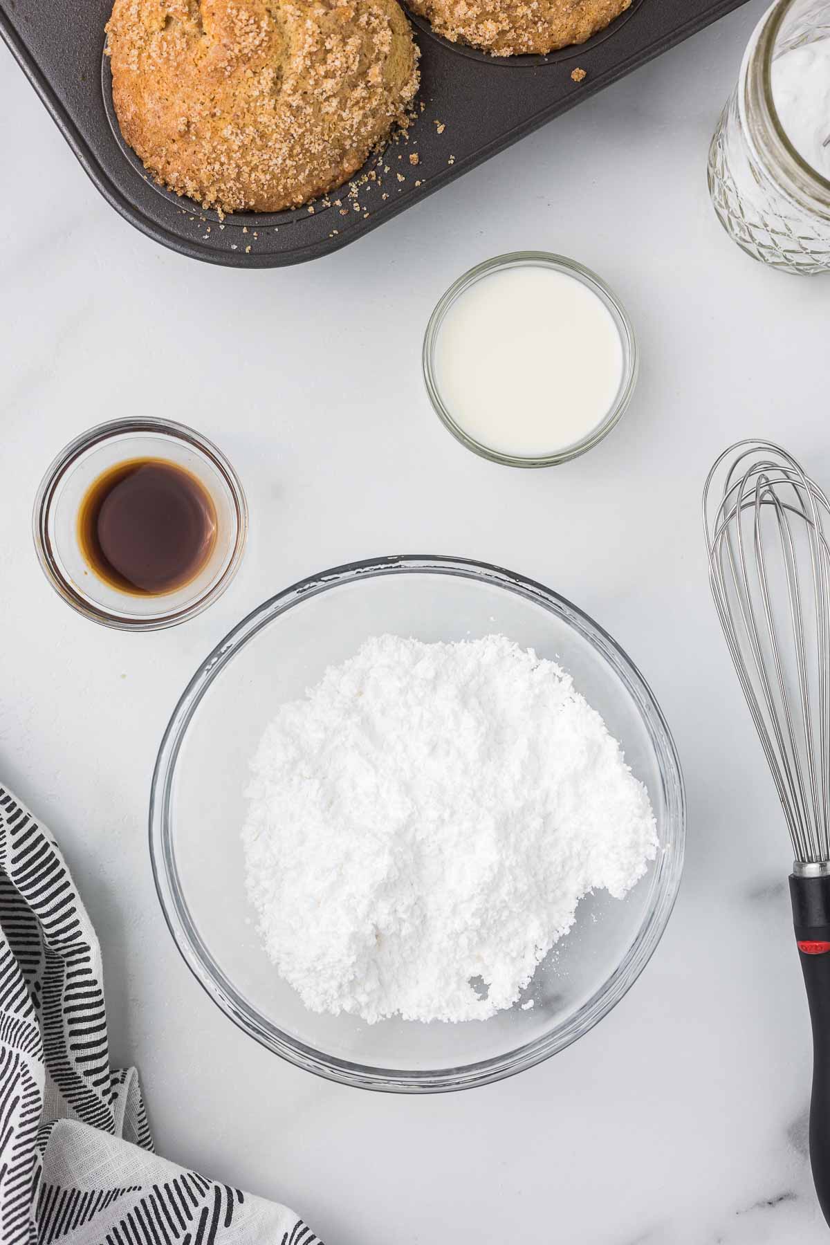 Step 6: Whisk together the powdered sugar, milk, and vanilla extract in a small bowl to make the drizzle.