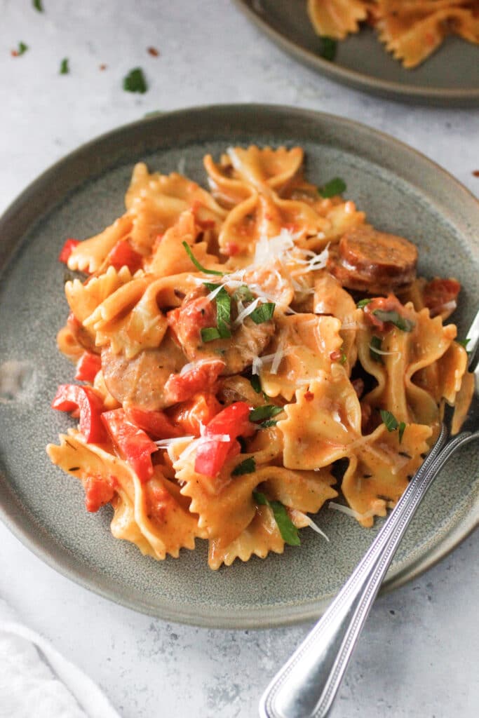 Creamy Cajun Pasta with Shrimp and Sausage is an easy and delicious dish that can be made for a weeknight dinner in just 30 minutes. And don’t worry, it’s not too spicy for the kids.