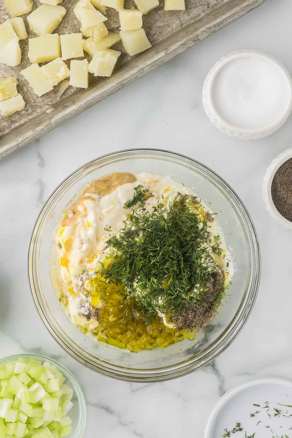 - Taste and adjust! Add more salt, pepper, relish, or dill after it chills—flavors can mellow in the fridge.