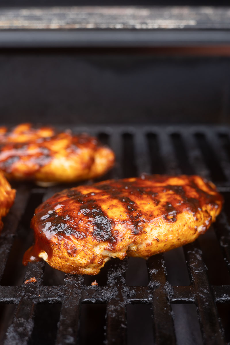 - During the last 5 minutes of grilling, brush the chicken with BBQ sauce. Flip and brush the other side. Grill for another couple of minutes, flipping and brushing one more time, until the sauce is caramelized and the internal temperature reaches 160°F.½-¾ cup BBQ Sauce