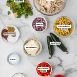 - Cooked Shredded Chicken – Use rotisserie chicken for convenience, or cook and shred your own for a fresher option. Poached, grilled, or slow-cooked chicken all work well.