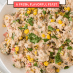That love for chicken salad inspired me to create this Mexican Chicken Salad, packed with tender shredded chicken, smoky fire-roasted corn, crisp red bell peppers, fresh cilantro, red onion, and jalapeños—all tossed in a creamy, flavorful dressing. It’s the perfect mix of bold flavors and fresh ingredients!