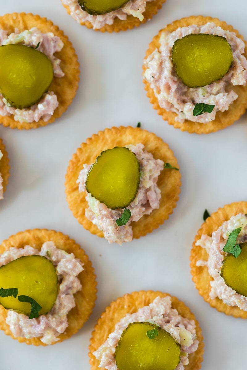 - Cracker Bites: Top Ritz crackers with a dollop of ham salad and garnish with a slice of dill pickle for the perfect bite-sized snack.