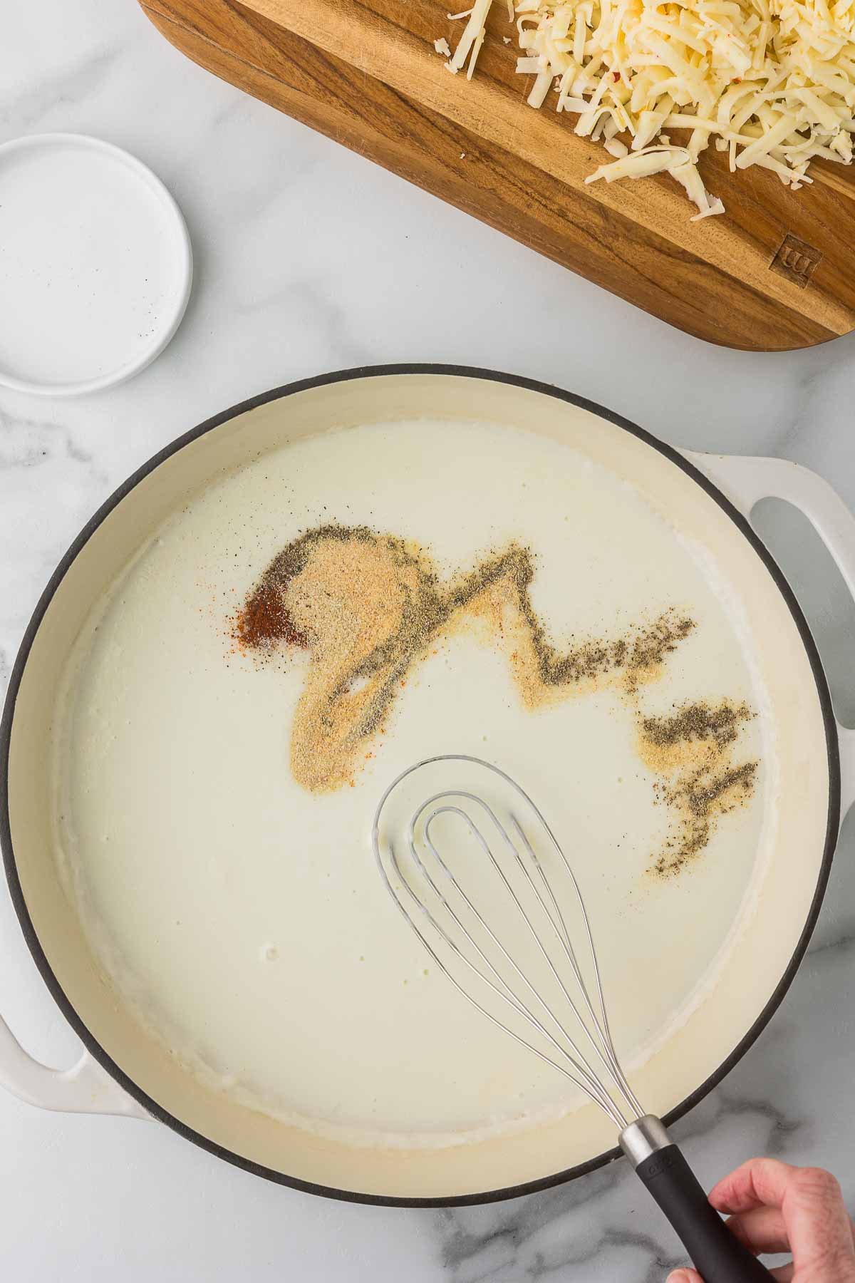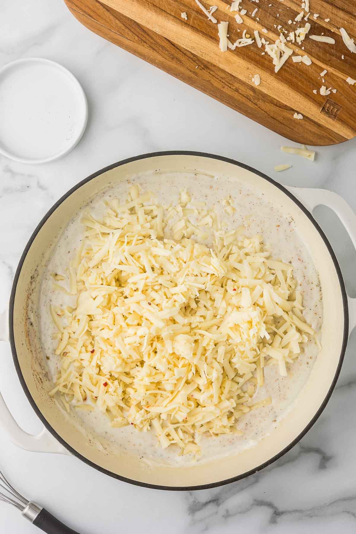 - Cheese: Freshly shredded melts best and gives you the smoothest texture. Pre-shredded will work in a pinch, but to me, the sauce just doesn’t have the same silky texture.