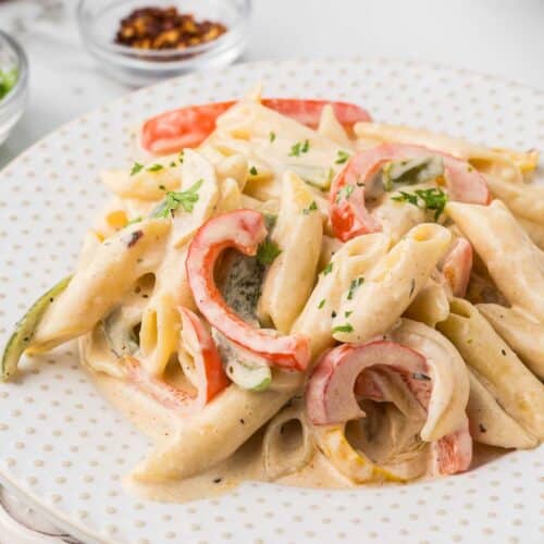 - Toss it with pasta and your favorite veggies for a quick pasta salad. I love it in my Greek Feta Salad.