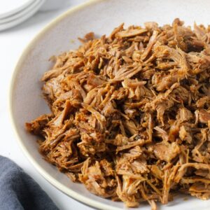 Pork shoulder is often referred to as Boston butt or pork butt. Despite its name, this cut of meat actually comes from the upper part of the shoulder. It has a great ratio of fat and lean meat making it perfect for this Instant Pot Pulled Pork recipe.